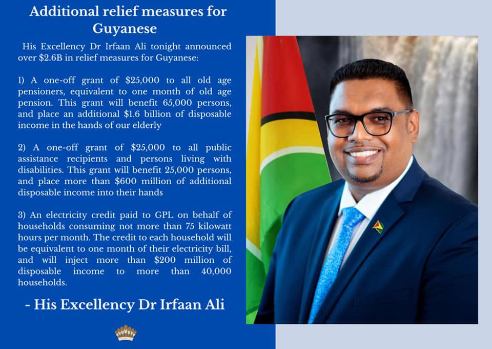 Additional relief measures for Guyanese His Excellency Dr Irfaan Ali tonight announced over $2.6B in […]