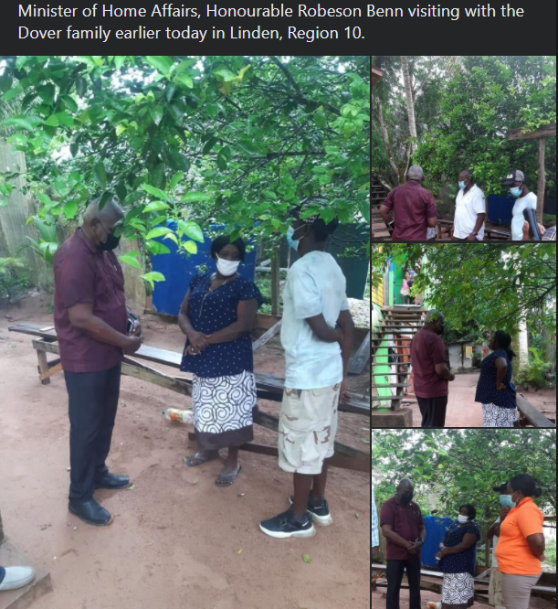 Minister of Home Affairs, Honourable Robeson Benn visiting the Dover family earlier today in Linden, […]